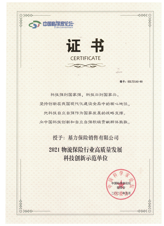 第十八届科学家论坛授予基力保险及董事长荣誉
